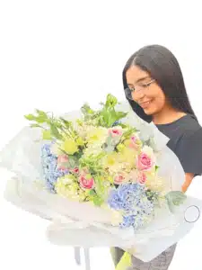 Ramo gigante con rosas, hortensias, gerberas, lisianthus, baby y eucalipto.
